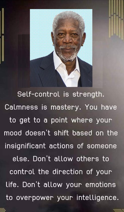 Morgan Freeman knows about this too - among other wise things, he says "Self-control is strength. Calmness is mastery. You have to get to a point where your mood does not shift based on the insignificant actions of someone else. Don't allow others to control the direction of your life. Don't allow your emotions to overpower your intelligence"That seems pretty clear! No doubt even the Buddha would approve - as does Yongey Mingyur as quoted. |